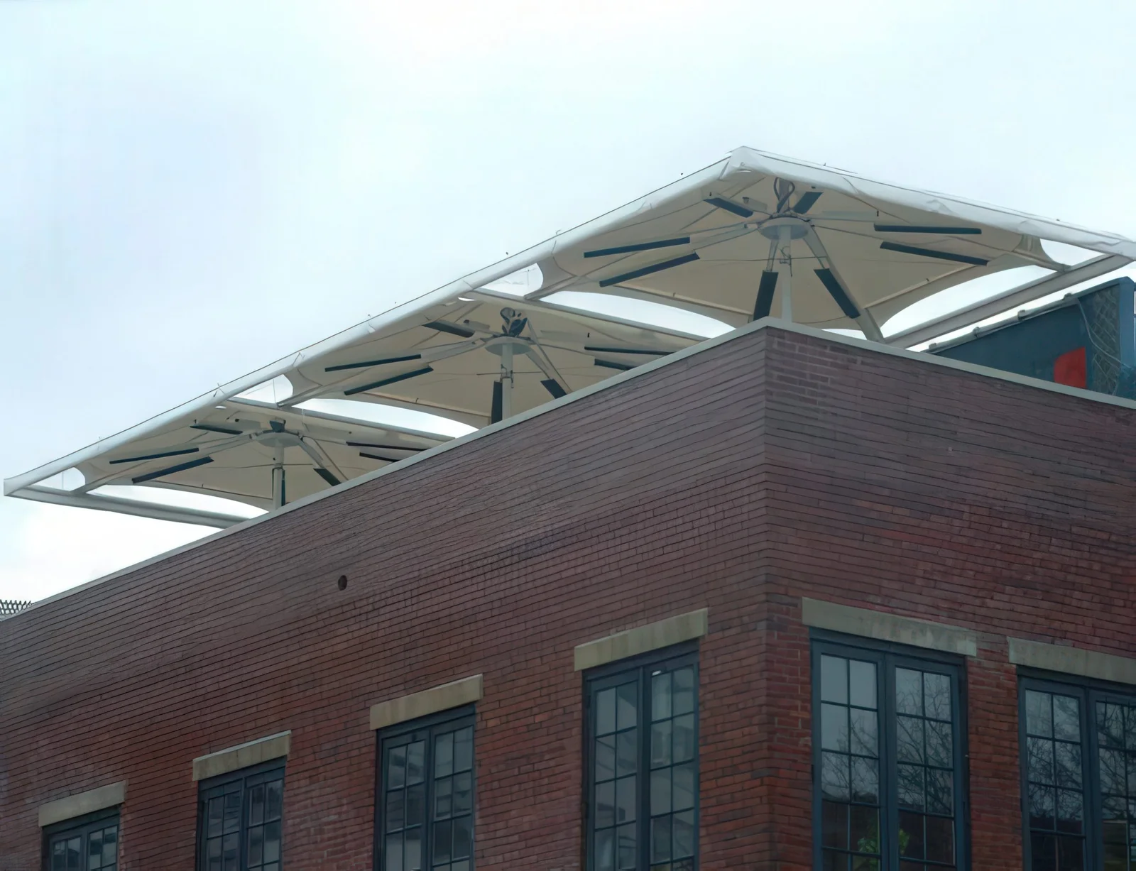 The entire Heatray Umbrella system has been custom designed and rated for hurricane category 2 and moderated snow loads. Further, linking gutters joining umbrellas together, have been equipped with heat tracing electric heating systems for snow and ice melting during winter.
